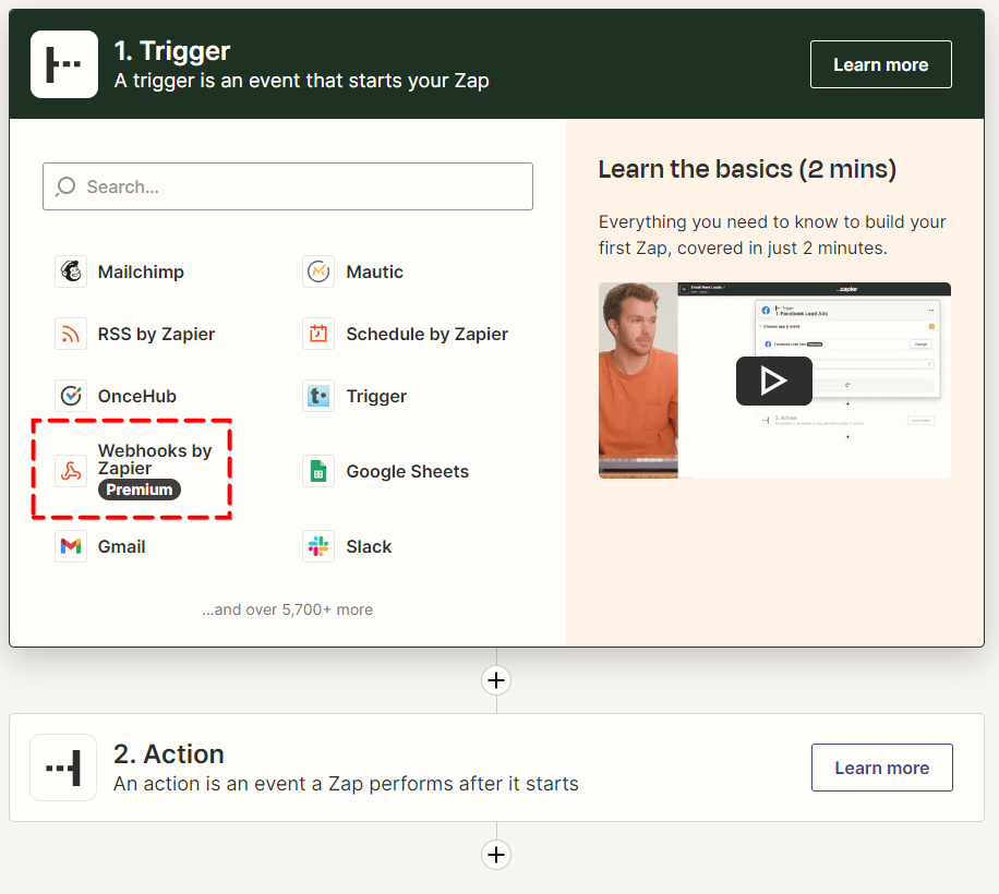 Select “Webhooks” from the list of trigger options.