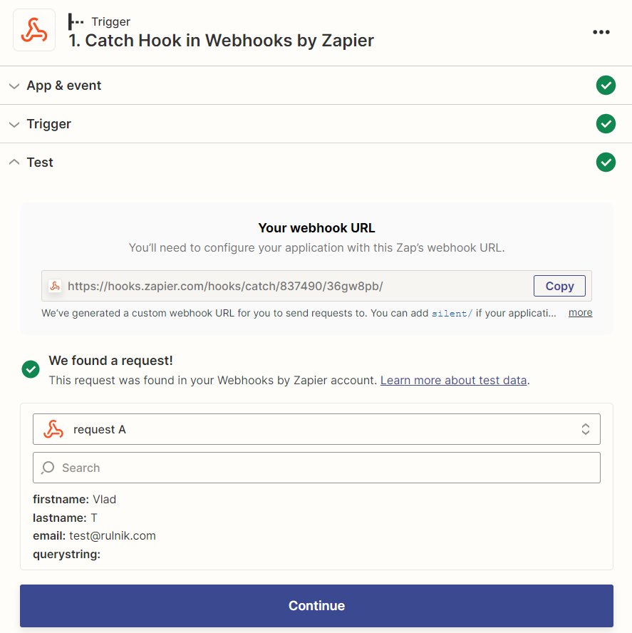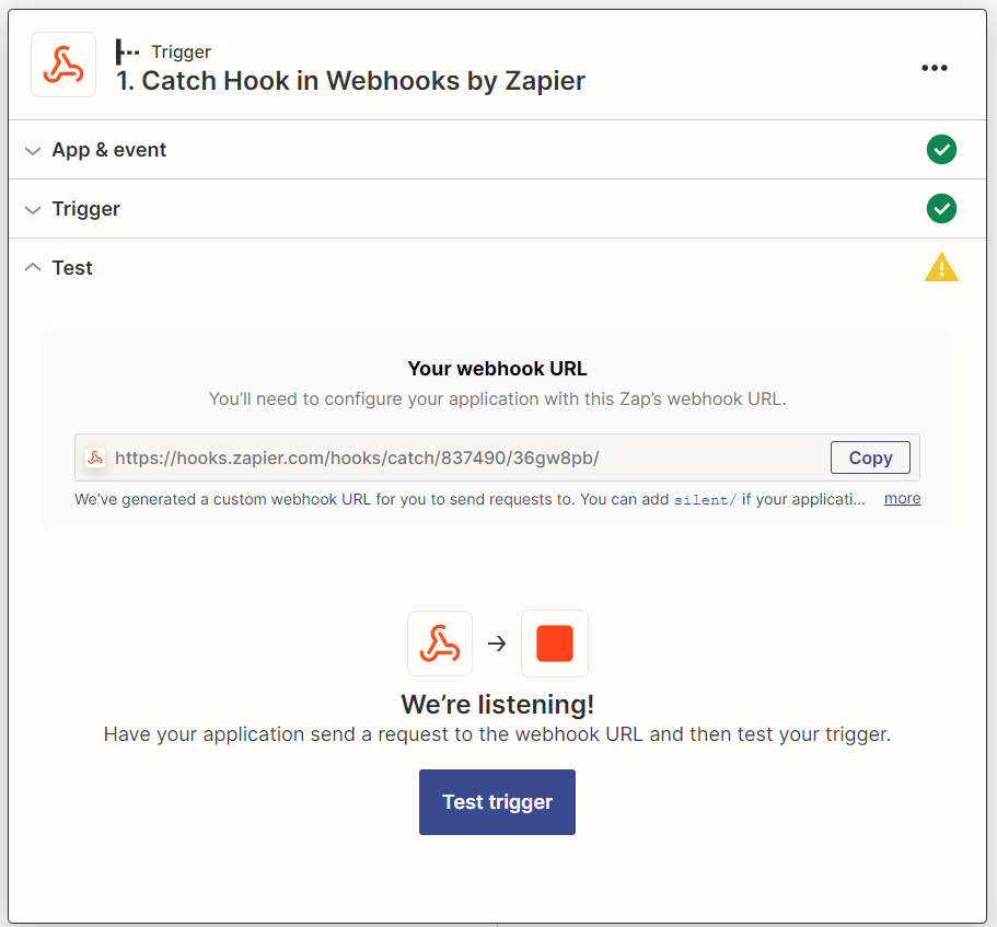To check the status of your request on Zapier, simply click the “Test trigger” button in the Zap editor.